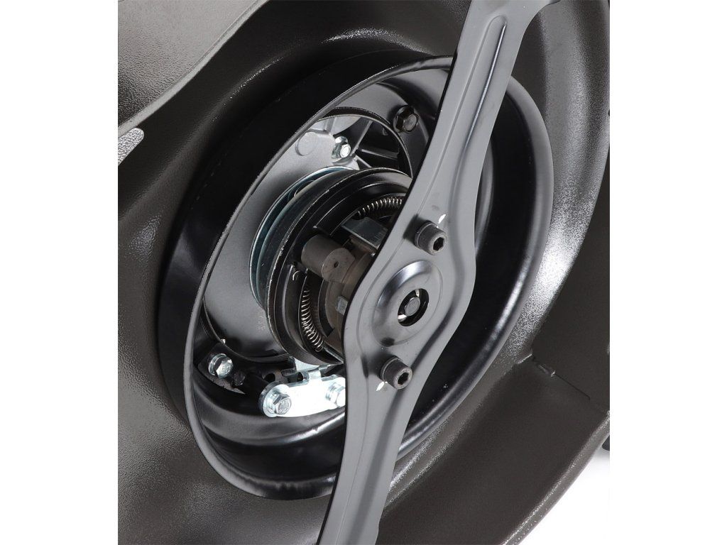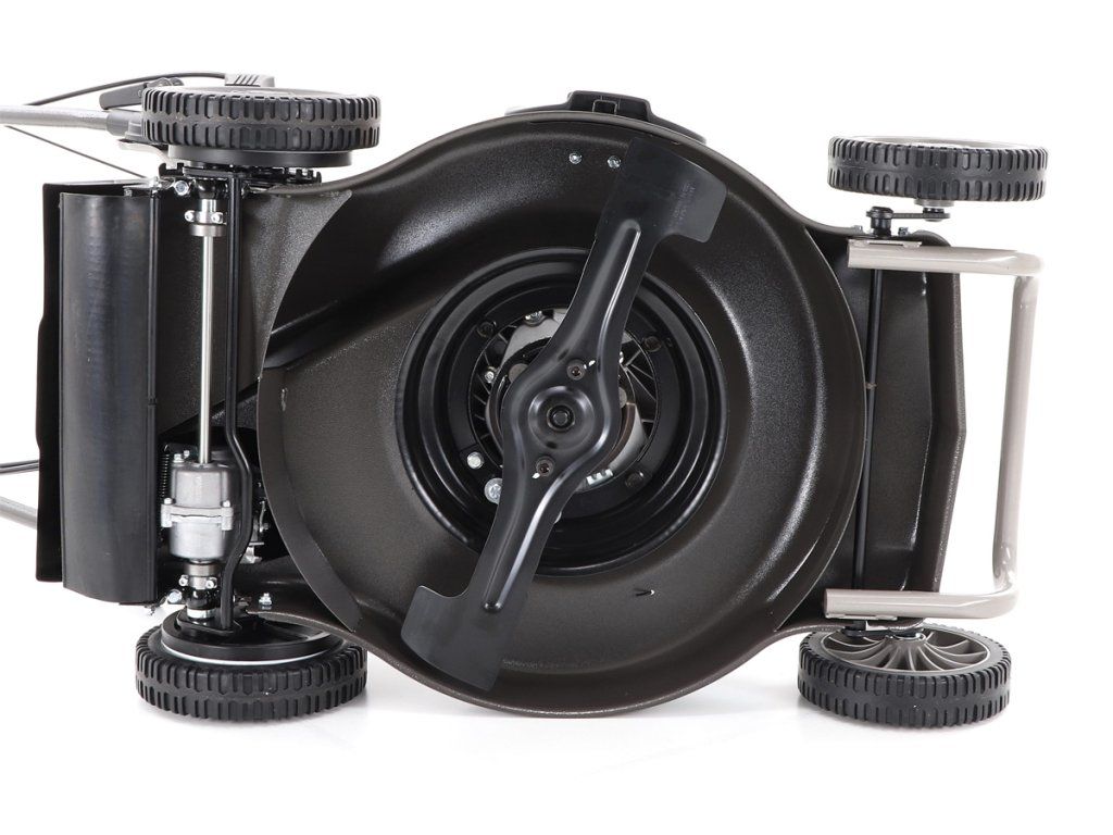 Pogumovaná sendvičová AL kola jsou uložena v oboustranných kuličkových ložiscích, centrální nastavení výšky sečení je u této značky samozřejmostí. Velkým nadstandardem u této sekačky je použita speciální profi BBC spojka nože,