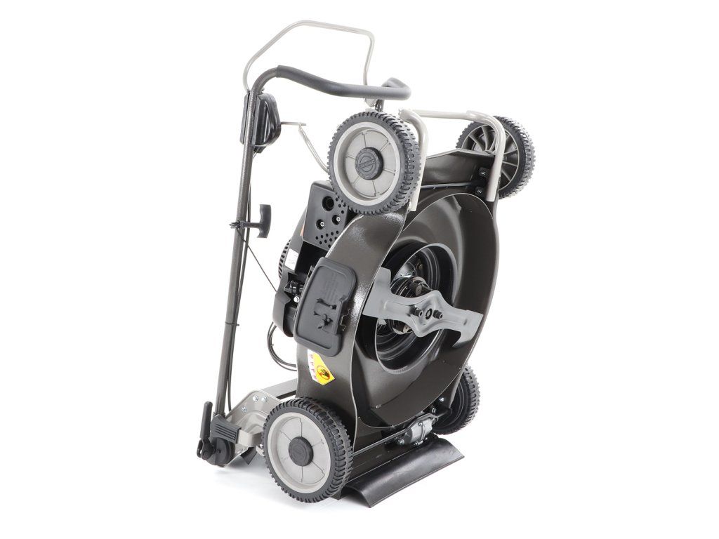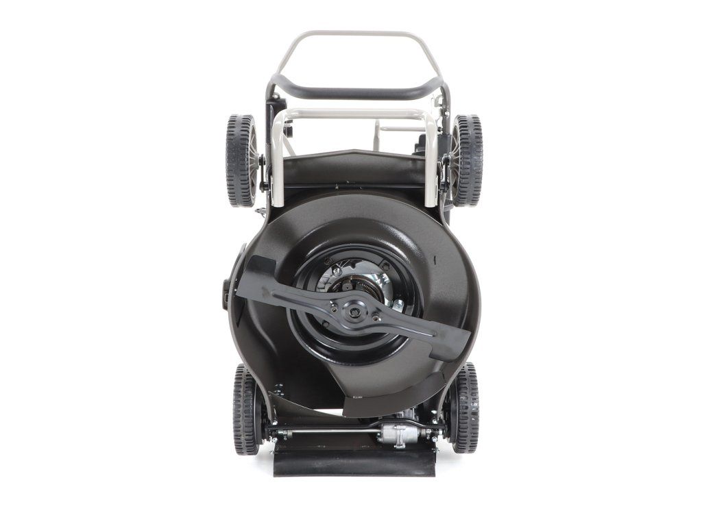 Novinkou sekačky je funkce tzv. "CHYTRÉ ŘEŠENÍ", sekačku lze pro ekonomické uskladnění, snadné čištění, servisování otočit a postavit na zadní speciální patky šasí, tímto se snadno dostanete na spodní část žacího ústrojí, uložení náprav a převodovku.
