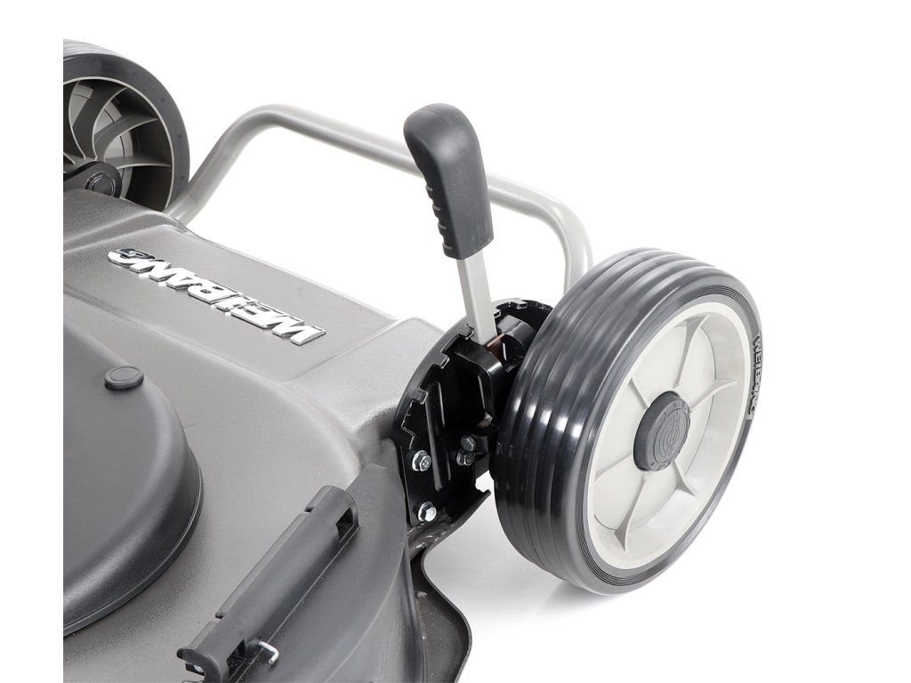 Díky šířce záběru 77 cm a nastavitelnému střihu trávy v 15 polohách (rozsah 17 - 129 mm) je možné rychle a přesně přizpůsobit výšku sečení podle stavu a druhu trávníku i sezóny. Výška se nastavuje pohodlně centrálně.