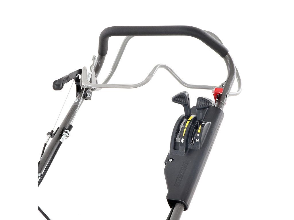 Zásadní výhodou této sekačky je variátorová převodovka s kovovým tělem, která umožňuje plynulé nastavení rychlosti pojezdu v rozsahu 2,99 až 4,5 km/h uživatel si tak může rychlost snadno přizpůsobit aktuálním podmínkám a svému pracovnímu tempu. Tento systém je velmi odolný a navržený pro dlouhodobé profesionální nasazení.