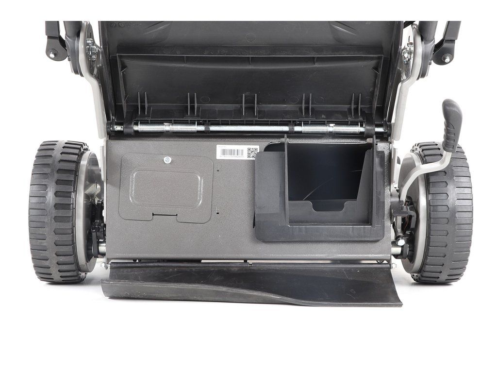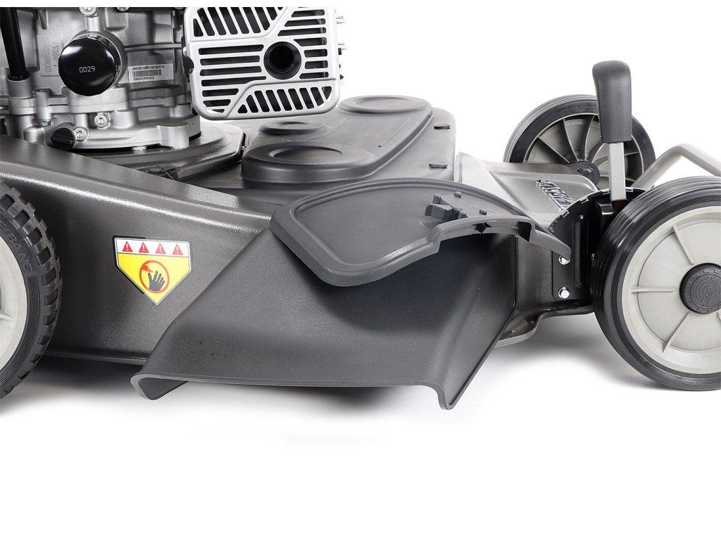 -Tělo sekačky je vyrobeno z kvalitní oceli, která zajišťuje vysokou odolnost vůči mechanickému poškození, korozi i dlouhodobému opotřebení. Masivní přední nárazník chrání stroj před poškozením při nárazech do obrubníků, stromů nebo jiných překážek.
