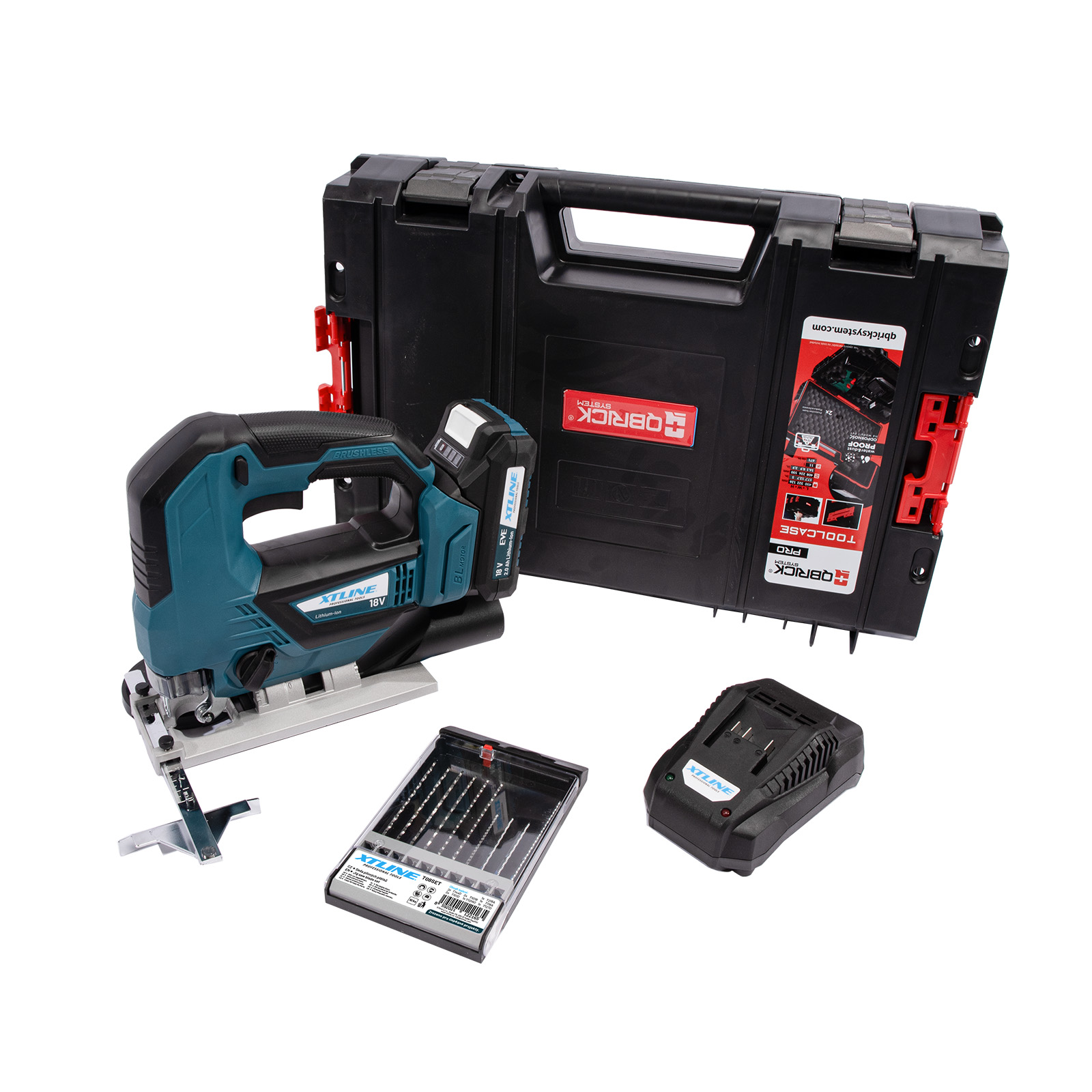 Parametry produktu XTLINE Aku přímočará pila bezuhlíková 18 V + baterie 2.0 Ah + nabíječka 2.4 A + pilové plátky + box