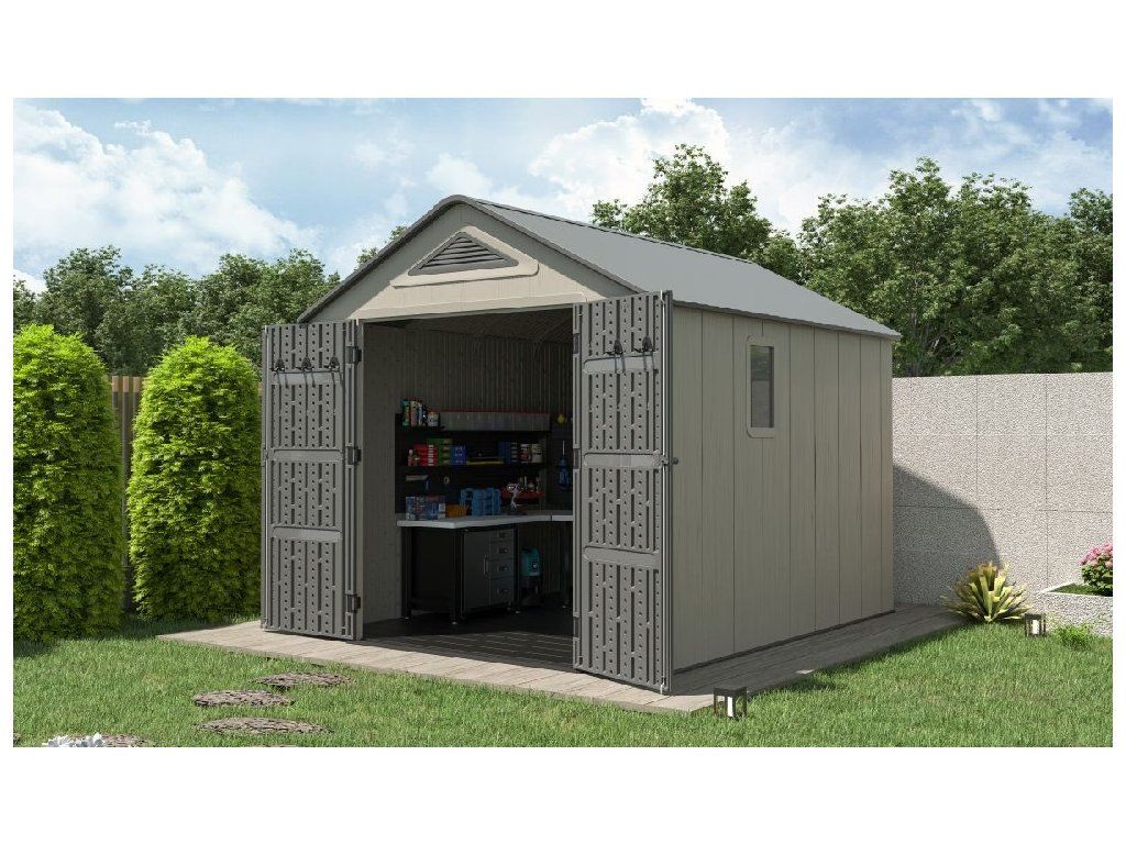 Součástí domku je také pevná plastová podlaha, která chrání před vlhkostí, blátem a umožňuje bezpečné uložení i těžších předmětů. O optimální klima uvnitř se stará ventilační systém na dvou stranách, který zajišťuje účinnou cirkulaci vzduchu.