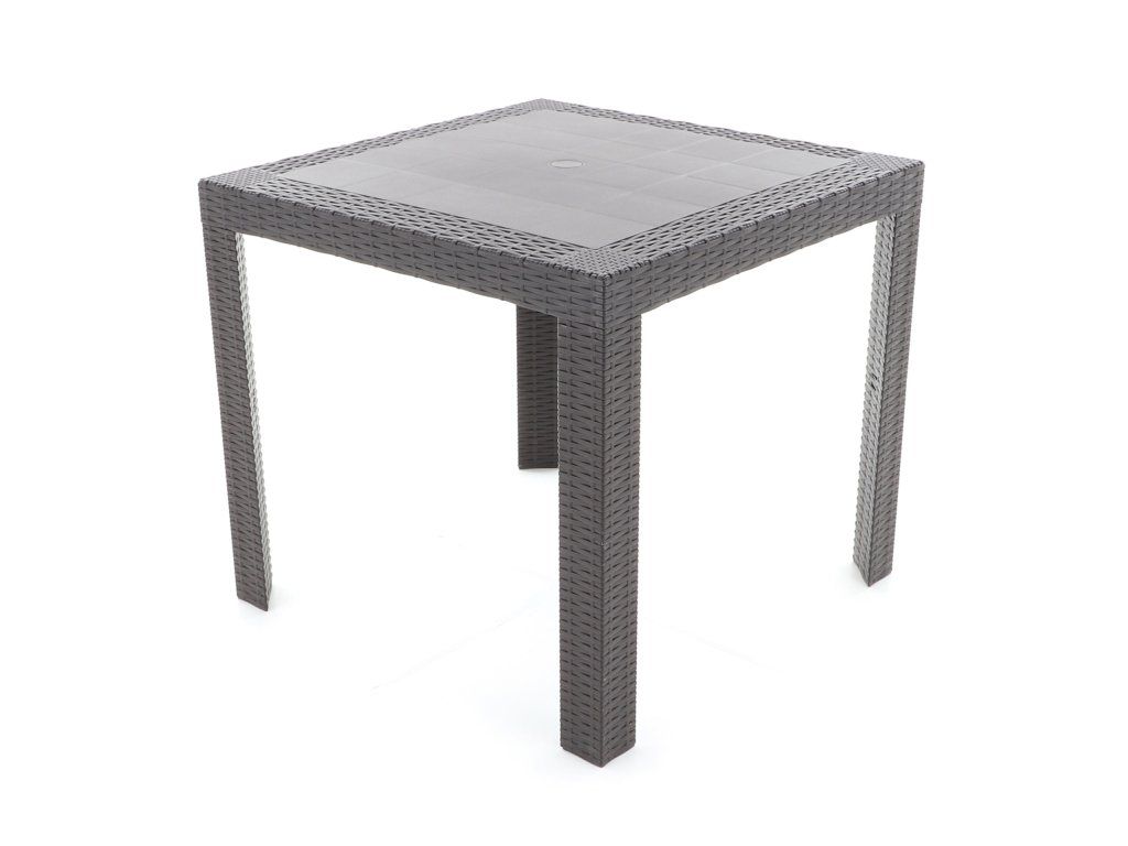 Stůl je ve tvaru čtverce v imitaci umělého ratanu s UV filtrem.