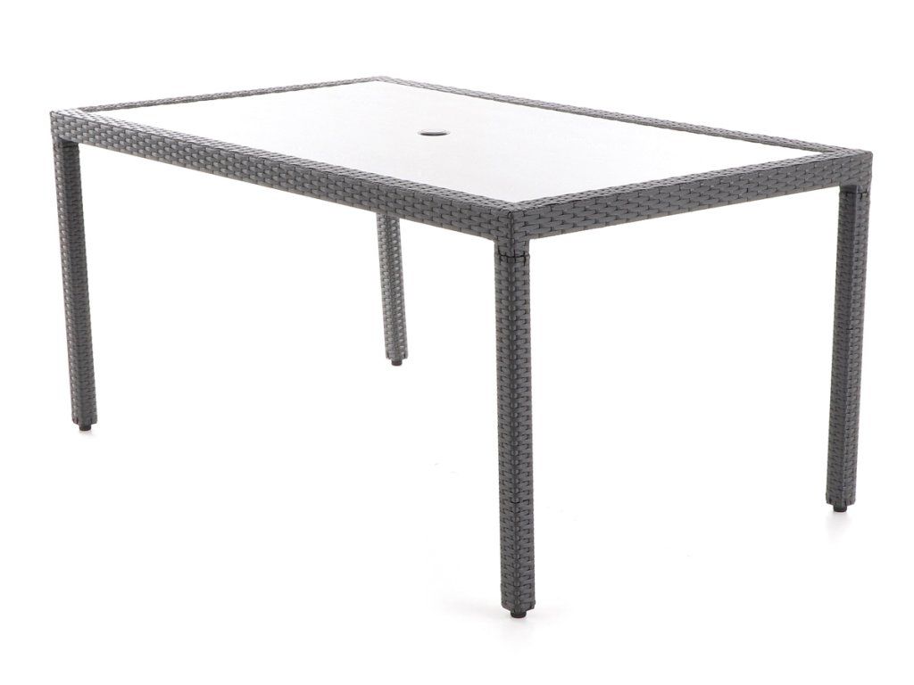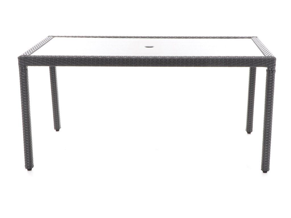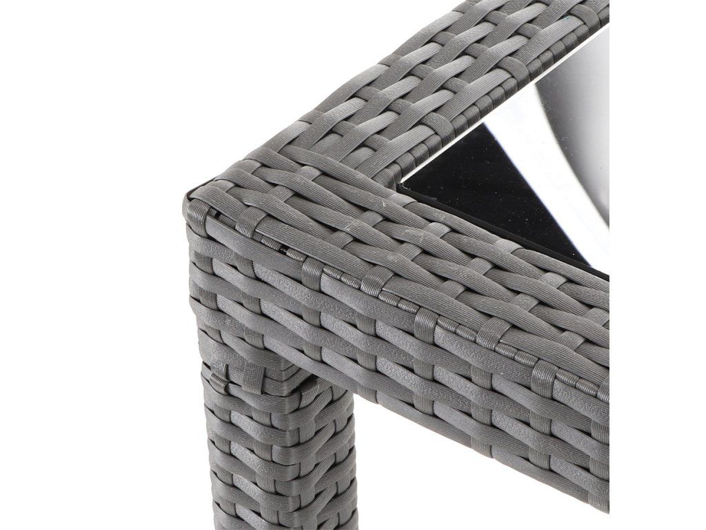 Stolová deska je z tvrzeného skla, podnoží opleteno umělým ratanem.