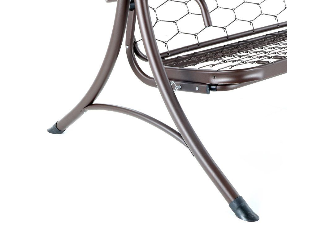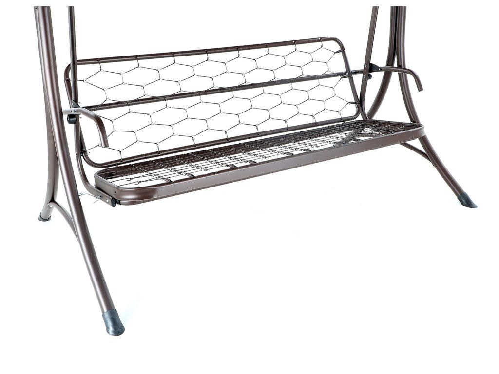 Kovová konstrukce podsedáku a opěradla je pro pohodlnost uživatelů vyplněna odpruženou drátěnou výztuhou. Masivní čalounění o síle 100 mm plně dokresluje charakter pohodlné luxusní houpačky pro ty nejnáročnější uživatelé.