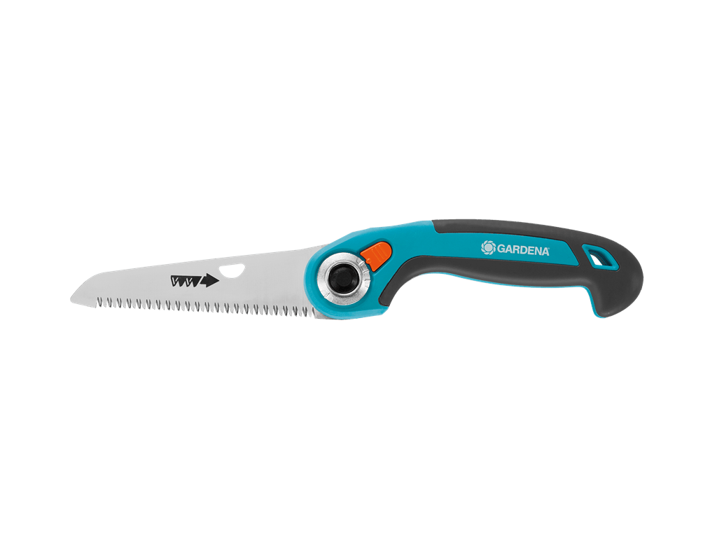 Tuto šikovnou skládací pilu můžete sebou nosit v zahradě, například tak, že ji bezpečně složíte, uzamknete a vložíte do kapsy u kalhot nebo si ji pověsíte na opasek. Kdykoliv budete pilu potřebovat, jednoduše ji otevřete znovu pomocí palce. Tlačítko zámku drží pilu pevně a bezpečně ve třech různých pozicích. Pilový list bezpečně zmizí v krásně tvarované rukojeti.