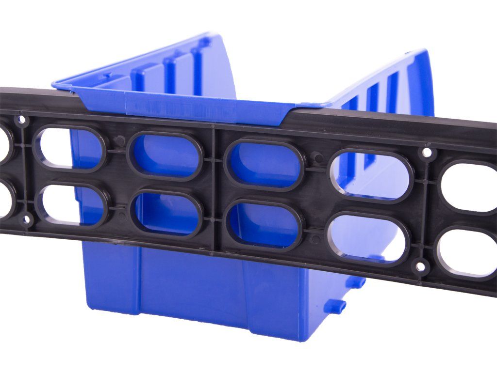 Sada organizéru na šroubky a spojový materiál obsahuje 2 ks plastových vodících lišt, které se dají přišroubovat na zeď, skříň, pojízdný vozík apod.