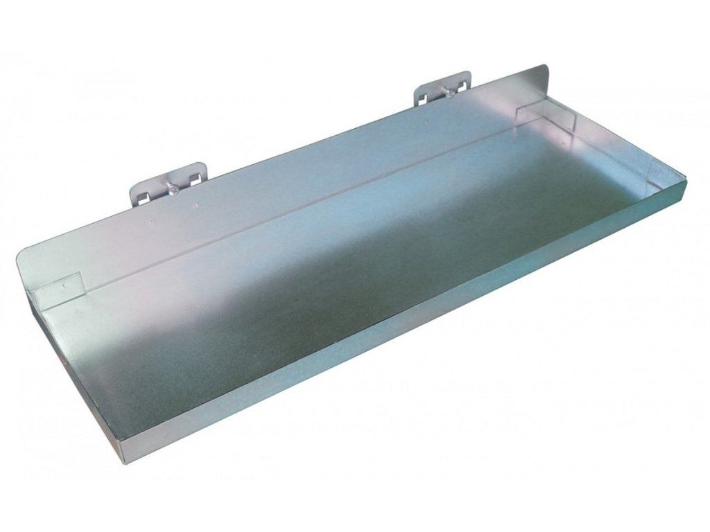Odkládací police, kompatibilní s dílenskými závěsnými systémy, které využívají čtvercové děrování 10 mm2 při vertikální/horizontální vzdálenosti středů otvorů 38 mm.