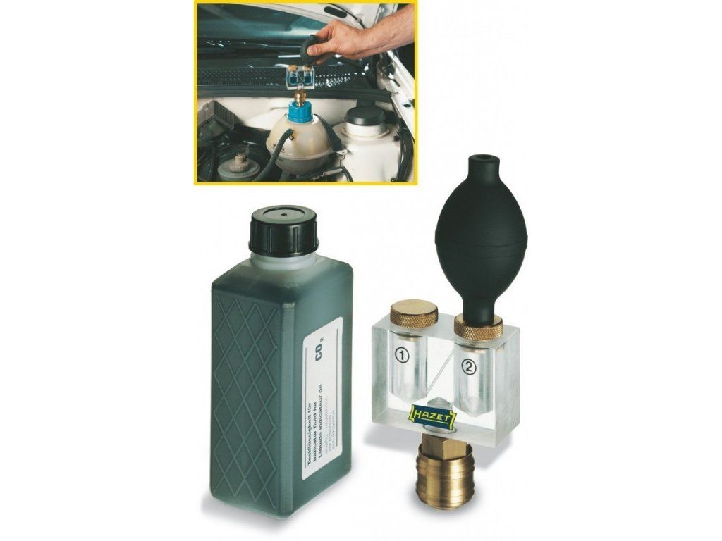 - Pro bezpečnou detekci netěsností mezi spalovacím prostorem a chladicím systémem u vodou chlazených spalovacích motorů plyn, nafta, benzin
