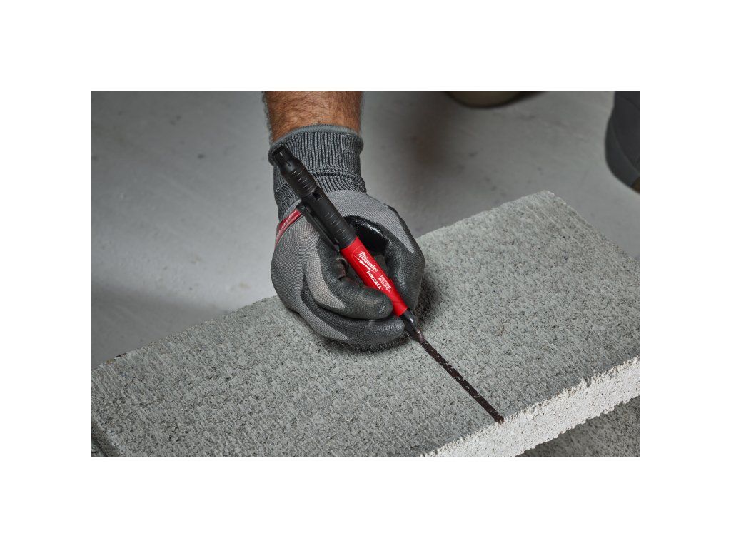 - Odolný hrot značkovače píše na beton, OSB desky i hrubé povrchy na stavbě
