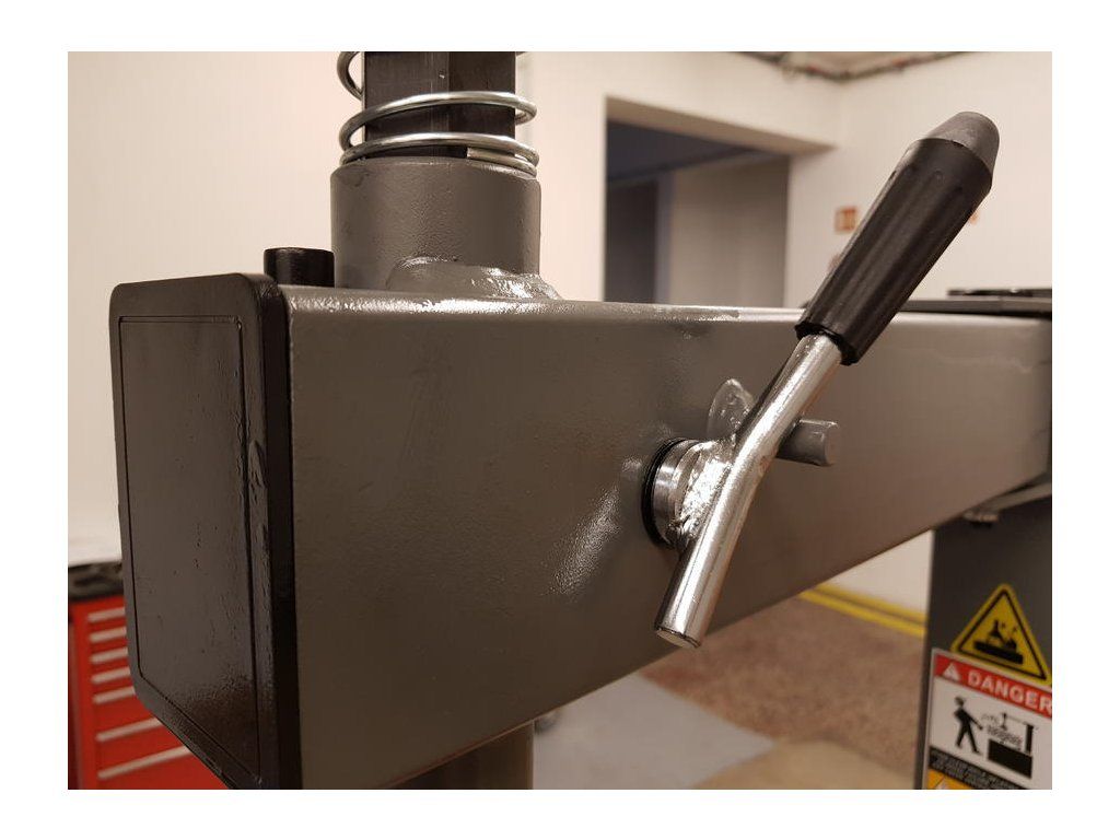 Otáčení stolku je jednorychlostní 6,5 ot./min. Montážní palce ve dvou velikostech 180 mm a 145 mm mají velmi dobře promyšlený tvar a jsou opatřeny plastovými chrániči pro zabránění poškrábání disku.