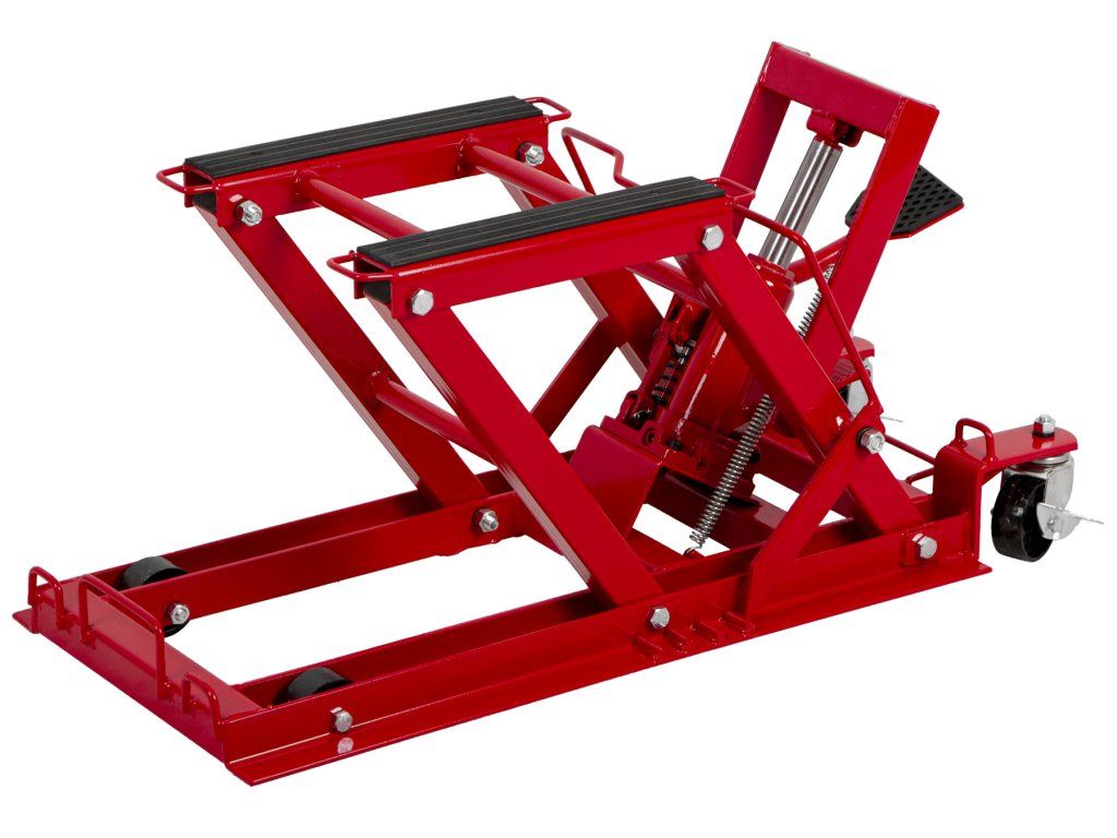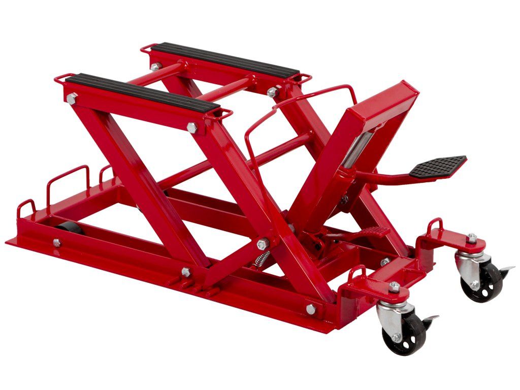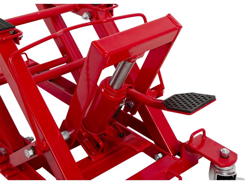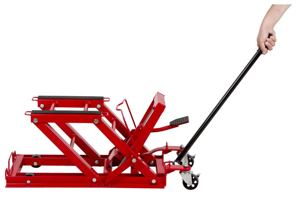 Hydraulický zvedák motocyklů s pedálovým ovládáním a nosností až 680 kg.